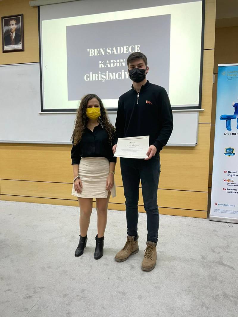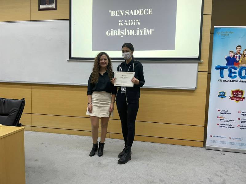 ‘Ben Sadece Kadın Girişimciyim’ etkinliğimizin sonunda konuğumuz Özge Orbey tarafından 2020-2021 Güz ve Bahar Dönemi’nde 2. sınıfta ilk üçe girerek derece yapan öğrencilerimize Onur ve Yüksek Onur Belgeleri takdim edildi. Bu belgeyi almaya hak kazanan; Baran Gençer, Duygu Manyas, Nisa Şahin’in başarılarının devamını dileriz.