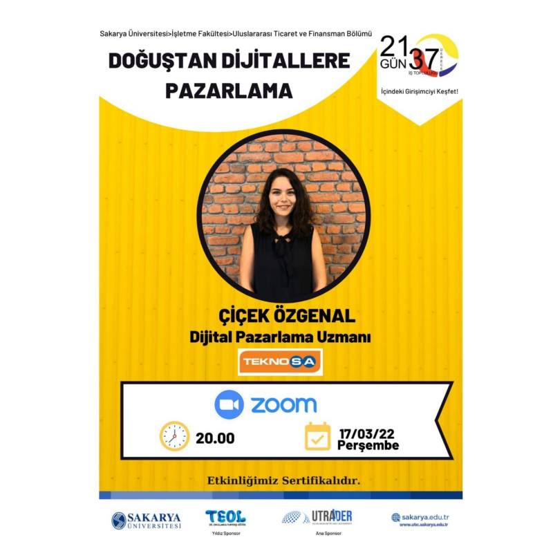 21 Gün 37 Derece İş Topluluğumuzun düzenlediği “Doğuştan Dijitallere Pazarlama” adlı etkinliği, Pazarlama Uzmanı Çiçek Özgenal Hanımefendinin katılımıyla 17.03.2022 Perşembe günü saat 20:00’da Zoom üzerinden gerçekleştirilecektir. Hepinizi bekliyoruz!