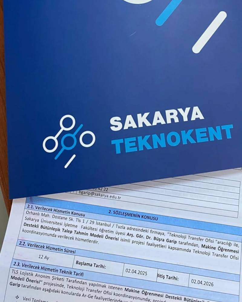 Yürütücüleri arasında bölümümüzün araştırma görevlisi Dr. Büşra Garip’in de bulunduğu SAÜ Teknokent Teknolojisi Transferi Ofisi koordinasyonunda TLS lojistik firması ile gerçekleştirilecek Arge projesinde imzalar atıldı. Sektörün önemli oyuncularından olan TLS Lojistik'in taşıma ve depolama süreçlerinin optimize edilmesine yönelik “Makine Öğrenmesi Destekli Bütünleşik Talep Tahmin Modeli Önerisi”, firmanın lojistik faaliyetlerinin verimliliğine katkı sağlayacak.