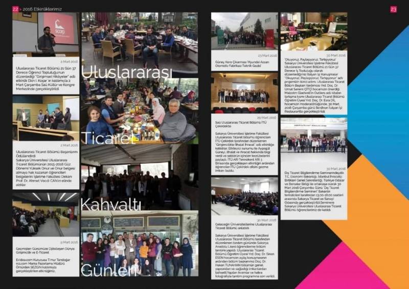 2014, 2015 ve 2016 yıllarında bölümümüzün kalbinin attığı o salonda, o sınıfta, o yolculukta yaşanan her etkinlik; yalnızca bir program değil, bir hayalin, bir heyecanın, bir dayanışmanın yansımasıydı. Bir araya gelip birlikte düşündük, ürettik ve öğrendik. Her fotoğraf, sadece bir anı değil; bir emeğin ve bir dostluğun kanıtıydı.