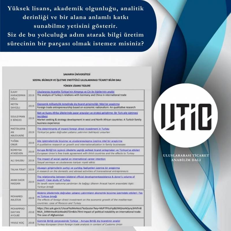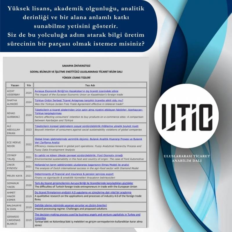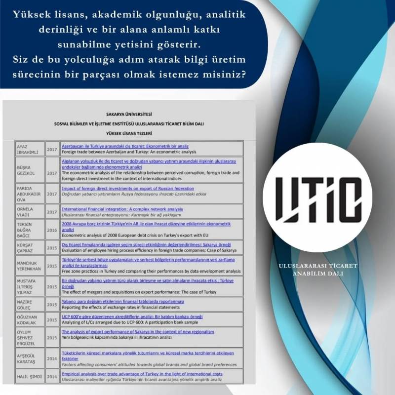 SAÜ Uluslararası Ticaret Anabilim Dalı Tezli Yüksek Lisans Programına Öğrenci Alımı Başladı.