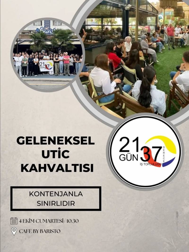 Bölümümüzün marka tescilli topluluğu 21 Gün 37 Derece İş Topluluğu tarafından düzenlenecek geleneksel UTİC kahvaltısında, aramıza yeni katılan 1. sınıf öğrencilerimizle tanışıyor, bölümümüzün değerli paydaşlarıyla kaynaşıyoruz.