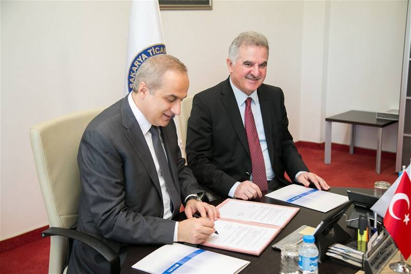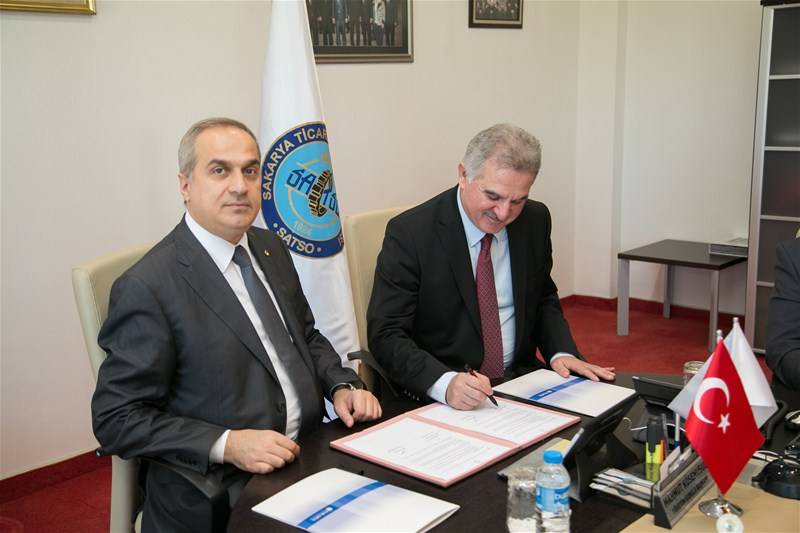 Sakarya Üniversitesi Uluslararası Ticaret Bölümü'nün yürütücüsü olduğu "Üniversiteden Pazar Elçiliğine" projesinin işbirliği protokolü 21 Ekim 2014 tarihinde Rektörümüz Prof. Dr. Muzaffer Elmas ve SATSO Başkanı Mahmut Kösemusul tarafından imzalandı.