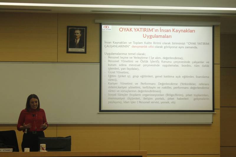Uluslararası Ticaret Bölümü'nün düzenlediği "Oyak Yatırım'da İnsan Kaynakları Yönetimine Dair Her Şey" başlıklı etkinlik 7 Kasım Cuma Günü Oyak Yatırım İnsan Kaynakları Yöneticisi Şule Sönmez'in aktılımıyla gerçekleştirildi.