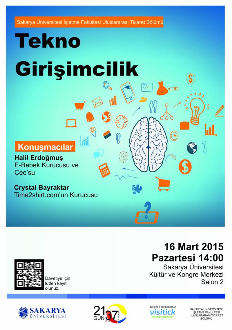 E-Bebek Kurucusu ve CEO'su Sayın Halil Erdoğmuş ve Time2shirt.com'un Kurucusu Sayın Crystal Bayraktar'ın katılımlarıyla gerçekleştirilecek olan Tekno Girişimcilik Semineri'ne ilişkin bilgiler aşağıdadır.