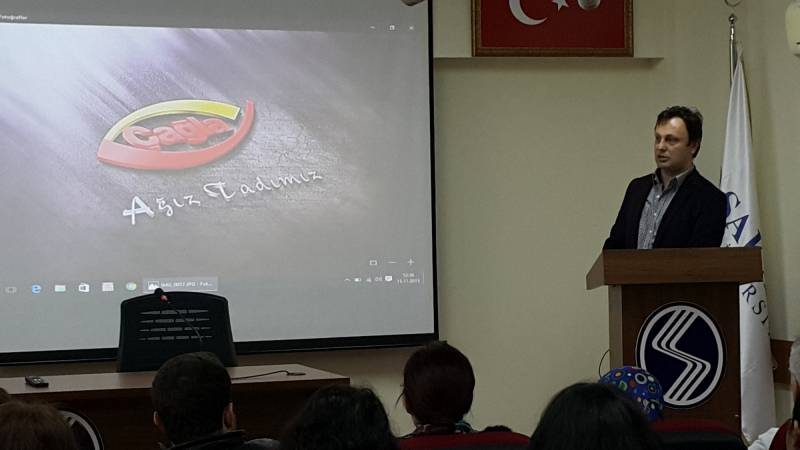 Sakarya'nın en fazla ihracat yapan yedi firmasından biri olan ve sektörde ilk beşte yer alan Çağla Çikolata'nın; uluslararası bir firma olma süreçlerini ve dış ticaret operasyonlarını, firma yetkilisi ve dış ticaret sorumlusu, Umut Beyazpınar Uluslararası Ticaret Anabilim Dalı Tezli ve Tezsiz yüksek lisans öğrencileri ile paylaştı. 15 Kasım pazar günü İşletme Fakültesi Sabahattin Zaim Konferans Salonu'nda gerçekleştirilen konferasta; pazarlamanın önemi, uluslararası bir fima olma sürecinde karşılaşılan zorluklar, Ekonomi Bakanlığı'nın firmalara sağladığı destekler, uluslararası ticarette risk yönetimi gibi başlıklar ön plana çıktı.