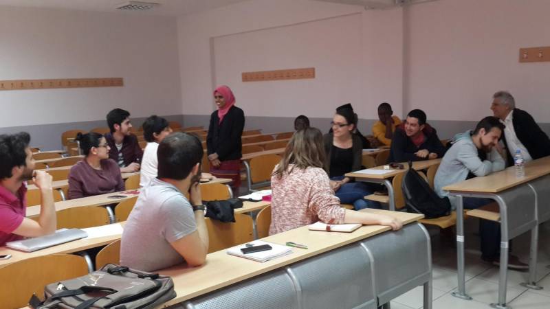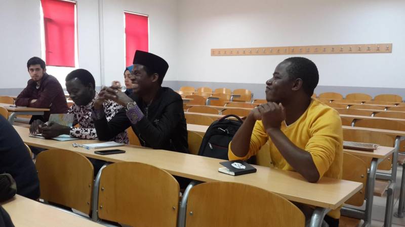 Burası Uluslararası Ticaret Bölümü...Benin, Gana ve Kamerun kökenliler ve Türk öğrenciler, International Marketing dersini Malezyalı misafir öğretim üyemiz Uluslararası İslam Ekonomisi ve Finansı Araştırma Merkezi (IRCIEF) Direktörü Dr. Latifa Bibi Binti Musafar Hameed'den aldılar.