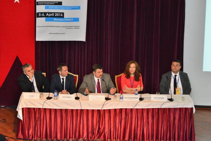 Sakarya Üniversitesi İşletme Fakültesi Uluslararası Ticaret Bölümü 10 Lisans ve 1 Yüksek Lisans öğrencimiz bildirilerini sunmak üzere Manisa Celal Bayar Üniversitesi İktisadi ve İdari Bilimler Fakültesi tarafından 5-6 Nisan 2016 da düzenlenen Gençlerle 360 Derece 3. Ulusal Öğrenci Kongresi'ne katıldılar. Süleyman Demirel Kültür Merkezinde başlayan etkinlik farklı oturumlarla devam etti. Çeşitli üniversitelerden katılan öğrenciler ile birlikte bildirilerini sunan bölüm öğrencilerimiz kongrede üniversitemizi temsil ettiler. Sakarya Üniversitesi İşletme Fakültesi Dekanı Prof. Dr. Ahmet Vecdi CAN hocamızında katıldığı kongrede öğrencilerimiz hatıra fotoğrafı çektirdiler.