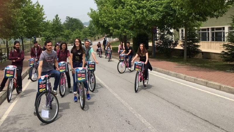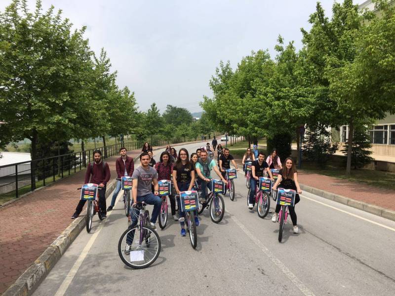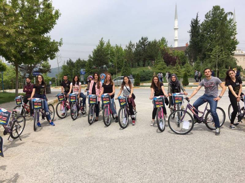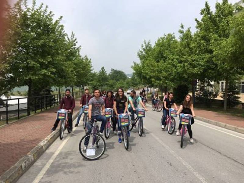 Sakarya Üniversitesi İşletme Fakültesi Uluslararası Ticaret Bölümü tarafından düzenlenen ve 3-4-5 Mayıs 2016 tarihlerinde gerçekleştirilen "Global Dünyanın 7 Harikası: 1. Uluslararası Ticaret Günleri" adlı etkinlik öncesi öğrencilerimizin bisikletli tanıtım turu.