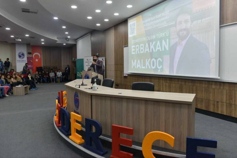 Sakarya Üniversitesi İşletme Fakültesi Uluslararası Ticaret Bölümü 21 Gün 37 Derece Topluluğu tarafından “Otomotivin Çılgın Türk'ü” adlı etkinlik SAÜ Hukuk Fakültesi Sabahattin Zaim Konferans Salonu'nda 18 Ekim 2016 Salı gerçekleştirildi. Etkinliğe Dizayn VIP kurucusu Erbakan MALKOÇ konuşmacı olarak katıldı. Konferansta kendi hayat hikâyesinden ve iş hayatındaki deneyimlerinden bahseden Malkoç, girişimcilik konusunda bil...
