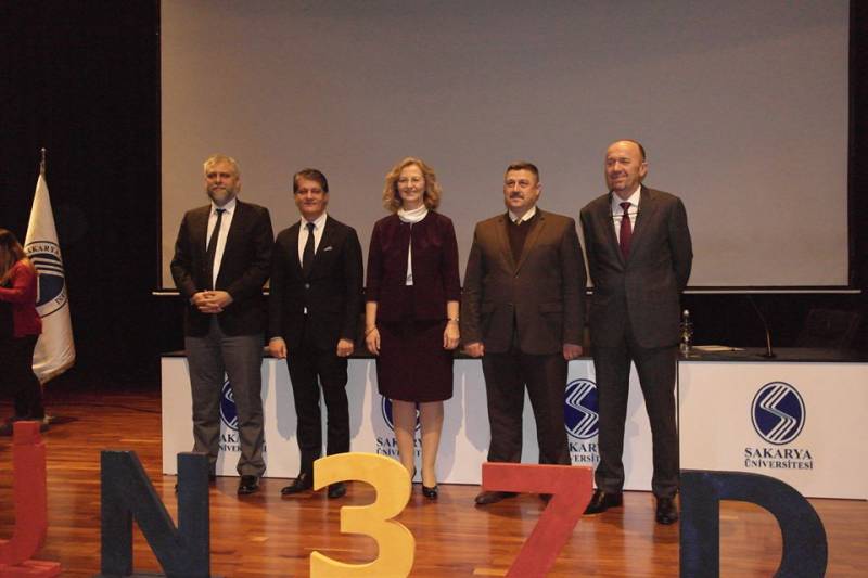 Sakarya Üniversitesi İşletme Fakültesi Uluslararası Ticaret Bölümü 21 Gün 37 Derece İş Topluluğu tarafından 'YILDIZLARIN ALTINDA İHRACAT ZİRVESİ' adlı etkinlik 30 Kasım 2016 Çarşamba günü Sakarya Üniversitesi Kültür ve Kongre Merkezinde gerçekleştirildi. İlk oturum Uluslararası Ticaret Bölüm Başkanı Doç. Dr. Hakan TUNAHAN moderatörlüğünde sıcak sohbet ortamında konuklara sorular ve cevapları ile geçerken, Ram Dış Ticaret'in Satış ve Pazarlama Direktörü Zeynep KUMAN öğrencilere ‘’Zannetmeyin, farz etmeyin, sorgulayın’’ diyerek tavsiyelerde bulundu. KORDSA GLOBAL' in Genel Müdür Yardımcısı Ali ÇALIŞKAN ‘’ Kordsa küresel büyüme vizyonuna sahip tek Türk şirketi’’ sözünü savundu. ZEN Pırlanta' nın Genel Koordinatörü Yiğit AKGÜN ‘’Türkiye’deki tüketiciler daha işin çok başında tek taşı olmayan binlerce kadın var.’’ diyerek pırlanta pazarının yeni geliştiğinden bahsetti.