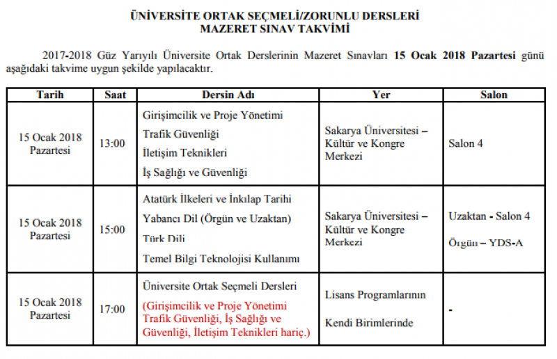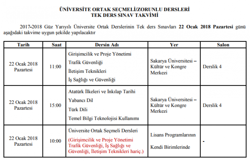 2017 Güz Dönemi üniversitemiz ortak seçmeli ve ortak zorunlu derslerinin mazeret ve tek ders sınav takvimlerine ekteki dosyalardan ulaşabilirsiniz.