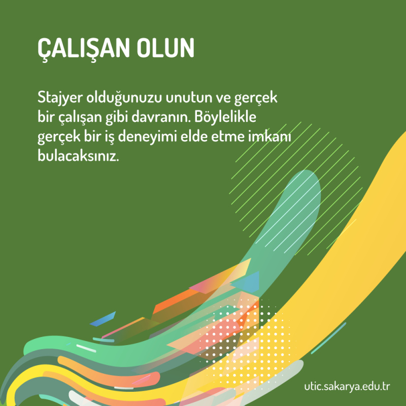 - Stajyer olduğunuzu unutun ve gerçek bir çalışan gibi davranın. Böylelikle gerçek bir iş deneyimi elde etme imkânı bulacaksınız.