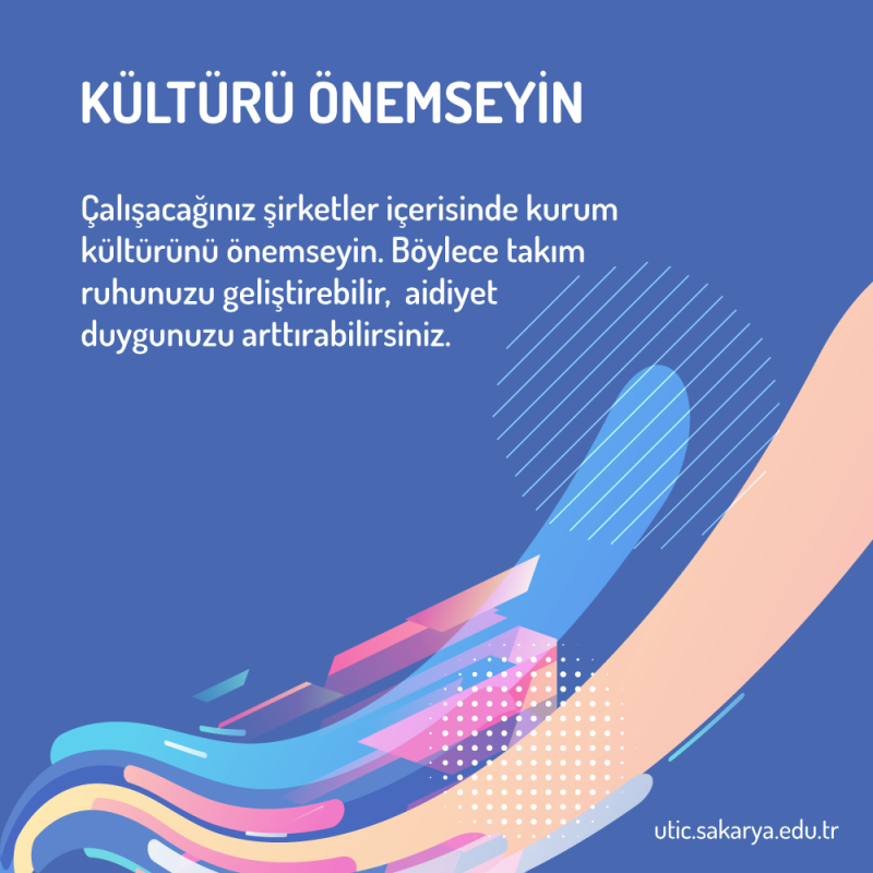 - Çalışacağınız şirketler içerisinde kurum kültürünü önemseyin. Böylece takım ruhunuzu geliştirebilir, aidiyet duygunuzu arttırabilirsiniz.