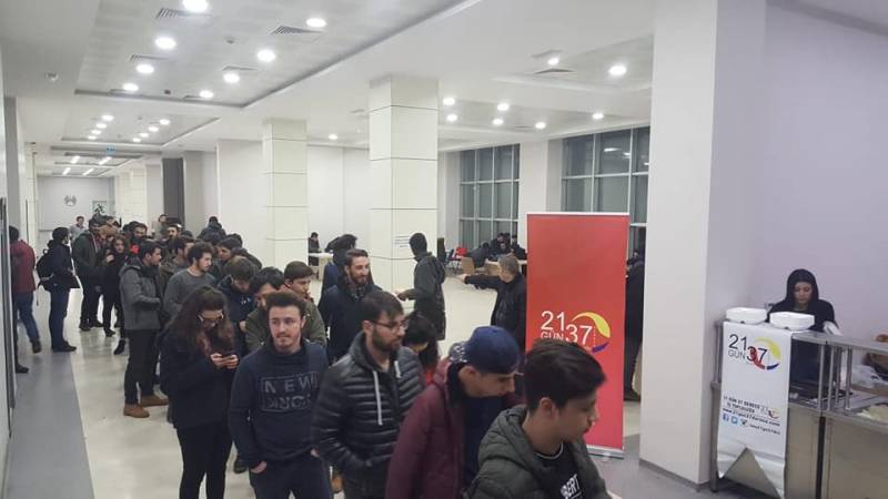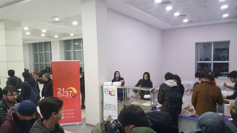 "Bu soğuk havalarda sınavlara çalışırken yeni kütüphanede sizi yalnız bırakmayıp yemek dağıtımı yaparak içinizi ısıtmak istedik. İçinizdeki girişimci hep sıcak kalsın."