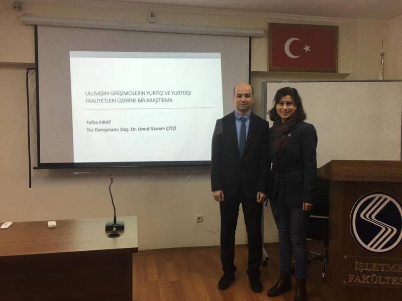 Doç. Dr. Umut Sanem Çitçi hocamızın danışmanlığında olan öğrencilerimizden Talha Fırat, “Ulusaşırı Girişimcilerin Yurtiçi ve Yurtdışı Faaliyetleri Üzerine Bir Araştırma” başlıklı yüksek lisans tezinin savunmasını başarıyla geçerek "Bilim Uzmanı" unvanına sahip oldu.