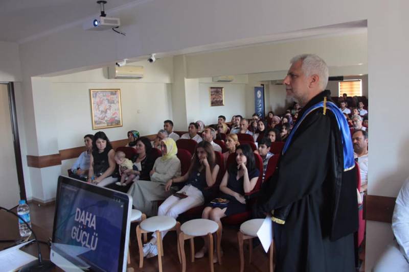 Yeni mezun öğrencilerimizi ve ailelerini ağırladığımız mezuniyet organizasyonumuzda öğrencilerimize Yüksek Onur ve Onur Belgeleri verildi. Ardından bölüm birincimiz İrem Aksoy mezuniyet kütüğüne ismini çaktıktan sonra duygularını dile getirdi.