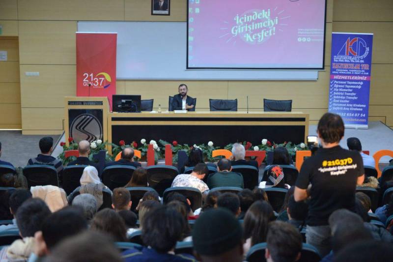 21 Gün 37 Derece İş Topluluğumuz tarafından SAÜ Kültür ve Kongre Merkezinde düzenlenen konferansa Sunny Yönetim Kurulu Başkanı Adem Atmaca konuşmacı olarak katıldı. Konuşmasına kişisel bir girişimci olarak hayata atılan babası Hayrettin Atmaca’dan söz ederek başlayan Adem Atmaca, babasının Hong Kong’da bir yol üzerinde satılan walkman ile teknoloji alanında yerli üretim yapan Sunny markasının temellerini attığını söyledi.