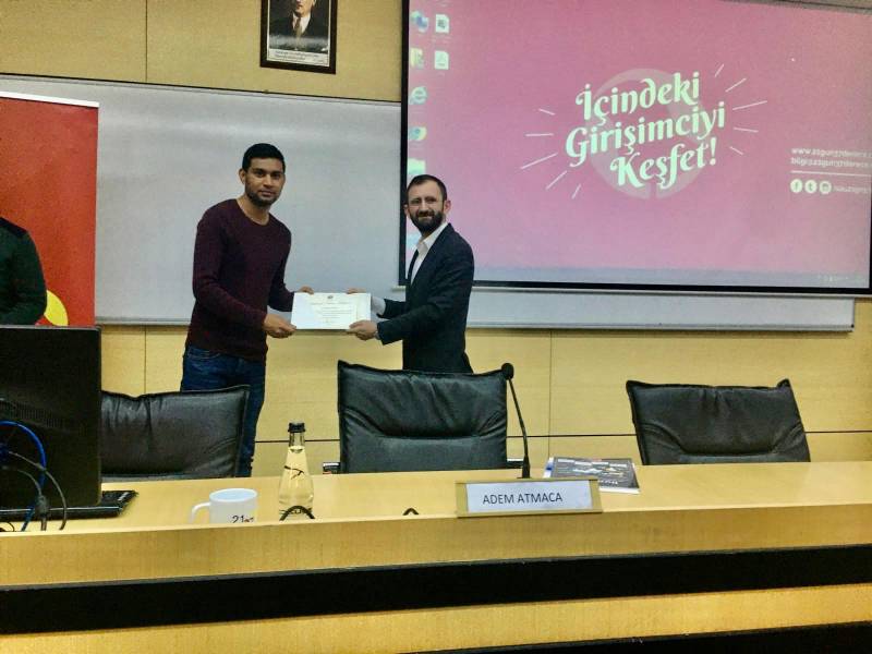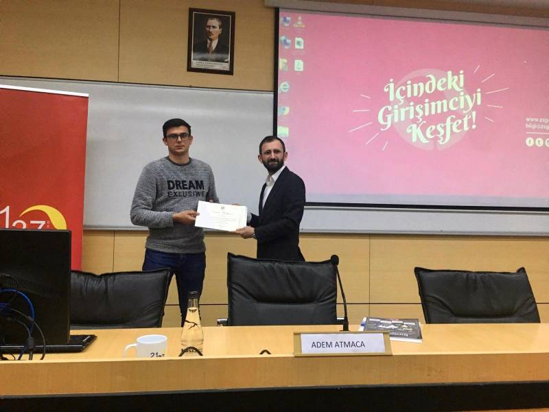 "Global Türk Teknolojisi: Sunny" isimli etkinliğin ardından, kapanış konuşması yapmak üzere söz alan bölüm başkanımız Doç. Dr. Hakan Tunahan; Bölümümüze dört buçuk senedir emek veren dördüncü sınıf öğrenci asistanı Canip SAYIN'a teşekkür etti ve hediyesini takdim ederek minnettar olduğunu bölüm adına dile getirdi. Ardından Canip SAYIN ile hatıra fotoğrafı çekildi. Dört buçuk yıldır süregelen emeğin bize emanet, yolun ve bahtın açık olsun.