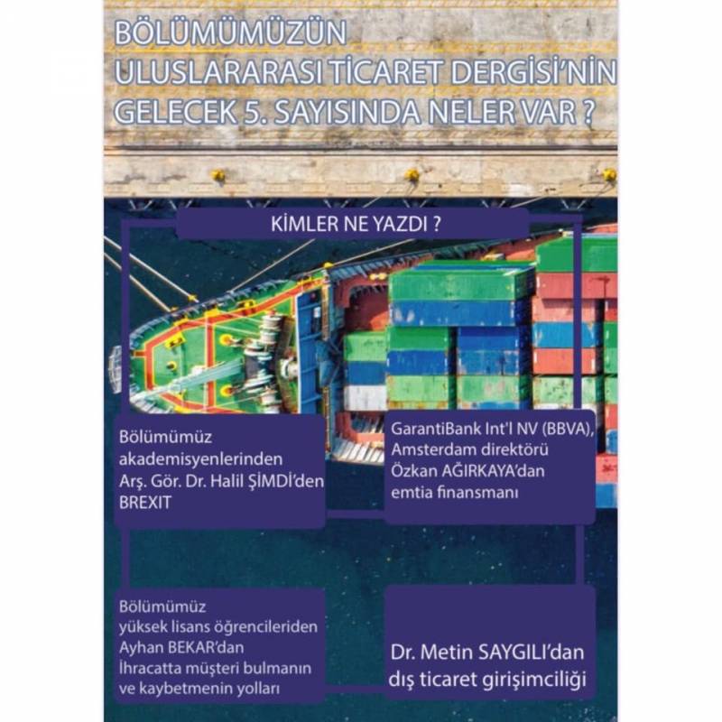 Beşinci Yılına Giren Uluslararası Ticaret Dergi'mizin Son Sayısı Geliyor.