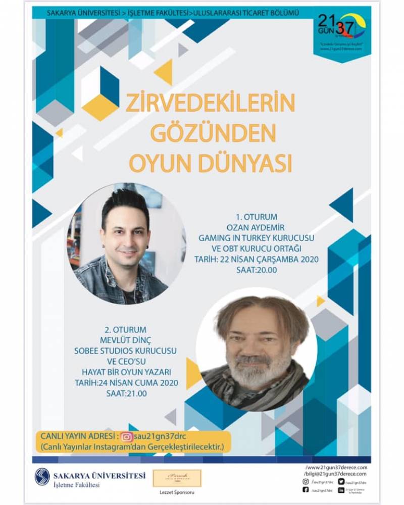 ‘ Zirvedekilerin Gözünden Oyun Dünyası ‘ adlı etkinliğimiz iki oturumdan oluşmaktadır. Birinci oturumda Gaming In Turkey Kurucusu ve OBT Kurucu Ortağı Ozan AYDEMİR ile 22 Nisan Çarşamba günü saat 20.00’da beraber olacağız. İkinci oturumda ise Sobee Studios Kurucusu ve Ceo’su & Hayat Bir Oyun Yazarı Mevlüt DİNÇ ile 24 Nisan Cuma günü saat 21.00’da buluşacağız. Canlı yayınlarımız Instagram üzerinden gerçekleştirilecektir. Etkinliğe katılmadan önce kayıt olmayı unutmayınız.