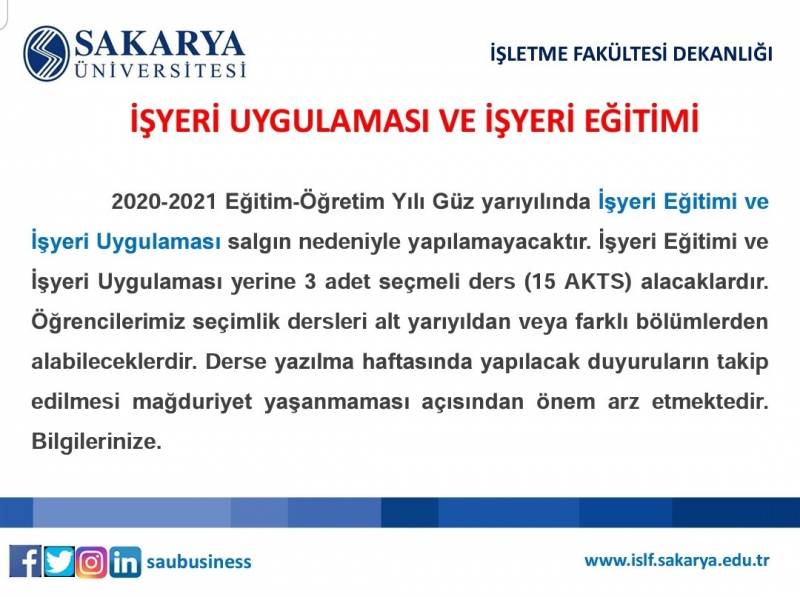 Fakültemiz tarafından zorunlu staja ilişkin yapılan açıklama ekte yer almaktadır.
